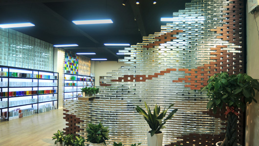 +more用空心玻璃磚砌筑外墻來替代或減少窗子的面積,不但采光效果更好,而且還能有較好的隔音效果。若用空心玻璃磚做室內隔斷,不但可以進行二次采光,還具有很好的隔音效果。